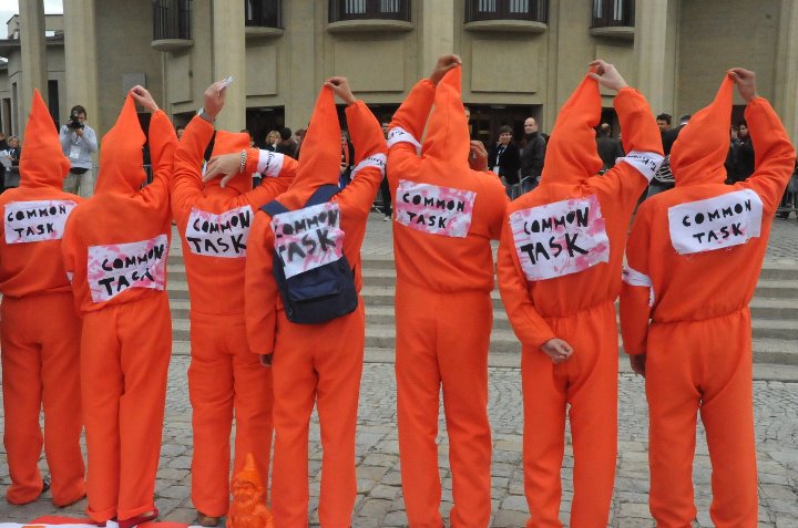 Czyżby w Wyborczej pracowali sami amatorzy, aby nie móc zauważyć tego faktu, ani że 10 osobowa Grupa The Krasnals pojawiła się w pomarańczowych strojach jako rzeźba społeczna Common Task – jako forma krytyczna wobec akcji złotych ludzi Althamera w Brukseli? Była to satyra, ironia owej pracy, na którą poszły grube pieniądze publiczne z kieszeni podatnika, a my zrobiliśmy to niewielkim kosztem, z własnej kieszeni – wydaliśmy około tysiąca złotych a nie prawie milion. (Efekt wizualny można porównać i ocenić samemu na zdjęciach.) Na rozdawanych ulotkach wyraźnie było też napisane kto stoi za tą akcją – Pomarańczowa Alternatywa oraz grupa The Krasnals.