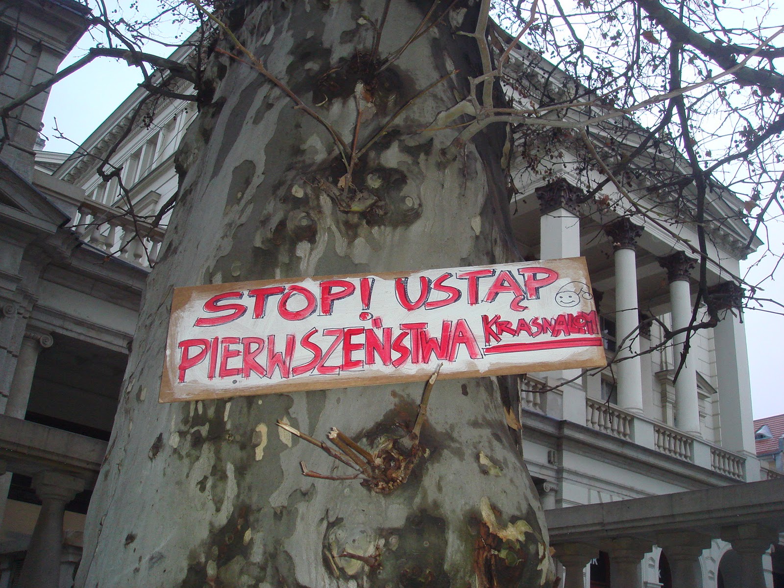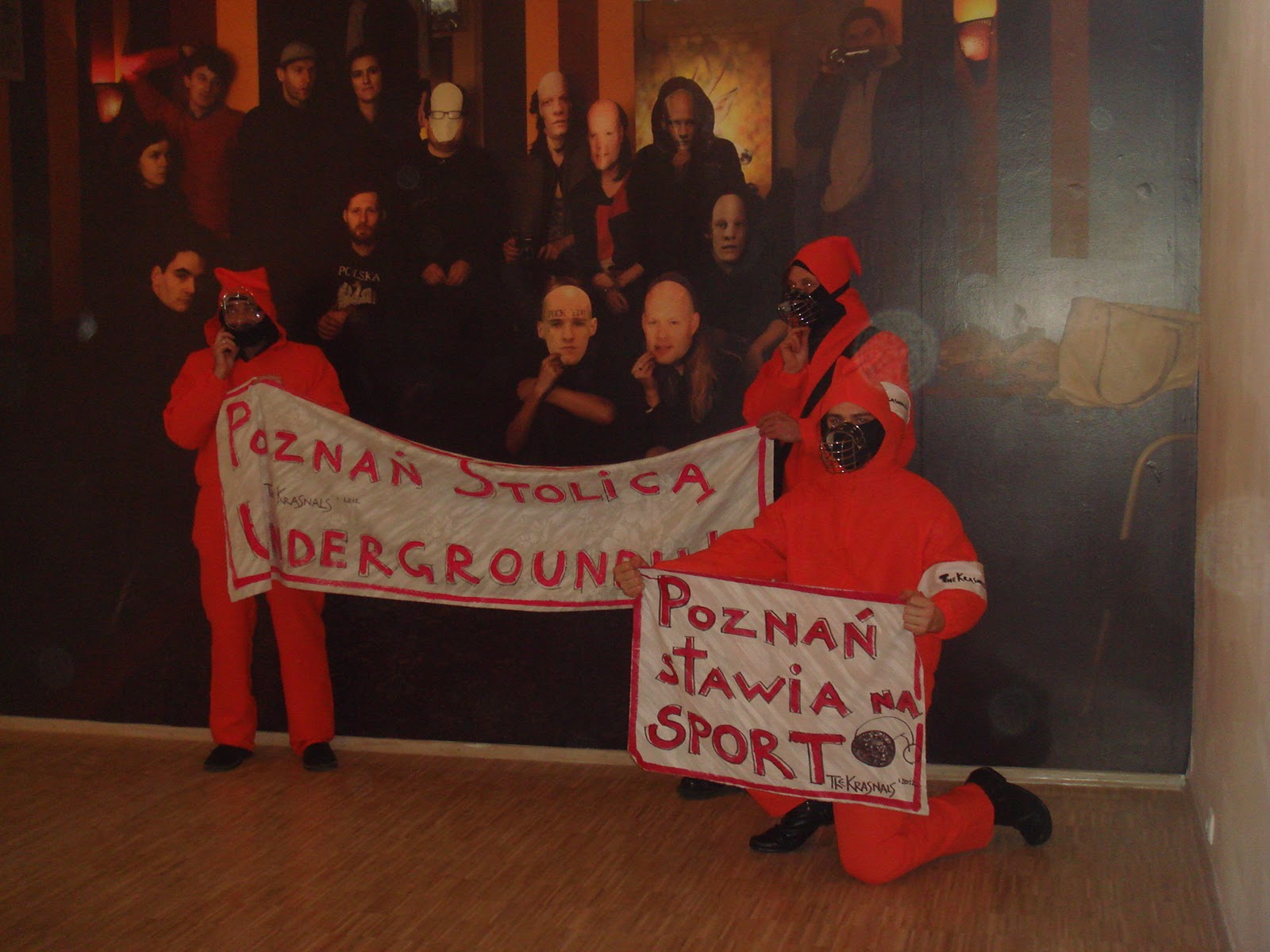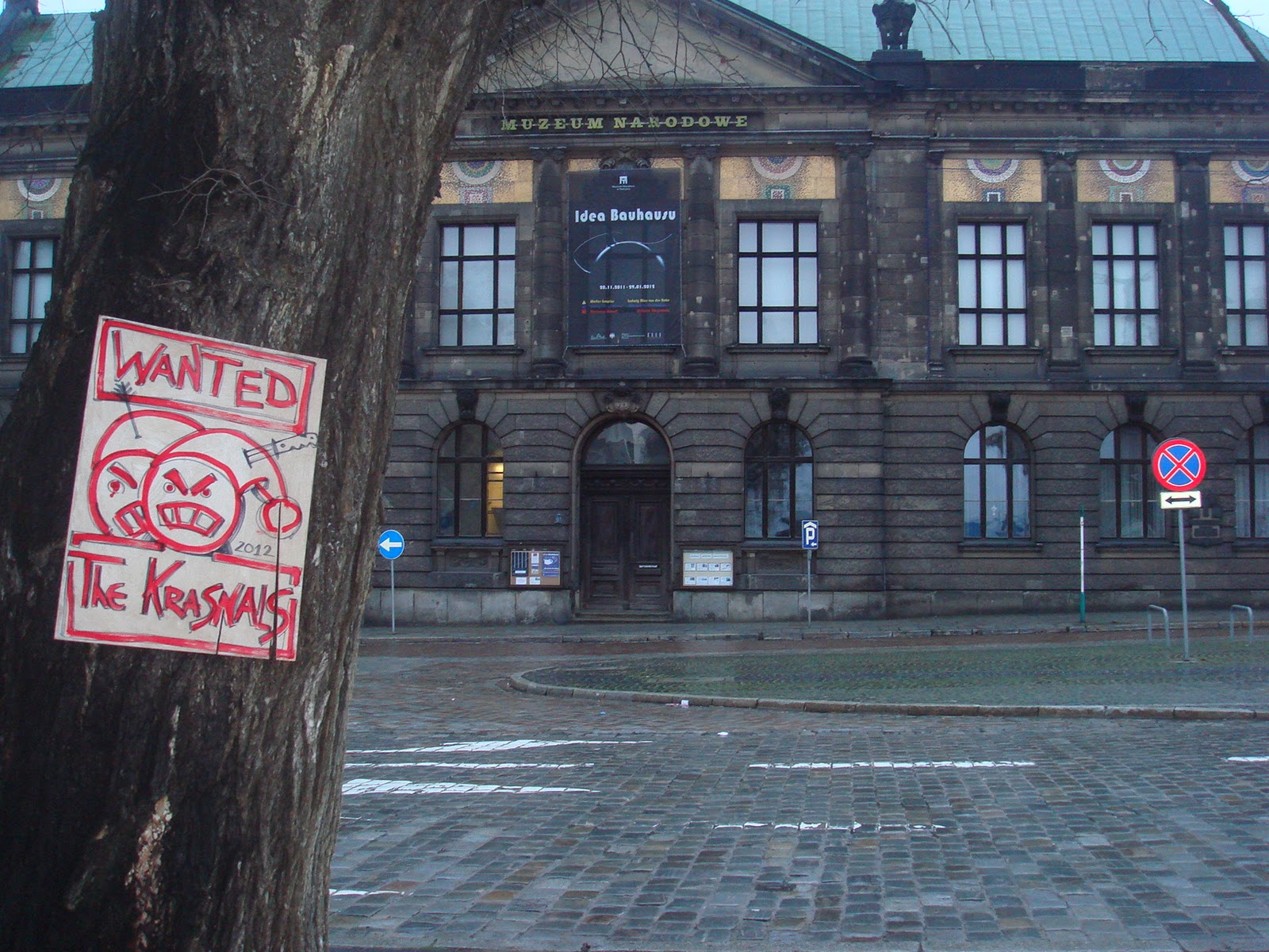 Oto w Poznaniu rozpoczęliśmy szeroko skrojoną akcję "Poznań how-how", gdzie za nawołaniem Beuysa kształtujemy świat wokół siebie. W wielu miejscach w przestrzeni miejskiej umieściliśmy tabliczki informacyjno ogrodowe, które wprowadzają nowe zasady funkcjonowania w mieście, kontynuują dzieło sprzątania zapoczątkowane przez Beuysa 1 maja 1972 roku na placu Karola Marksa w Zachodnim Berlinie. Podwaliny tego działania sięgają jednak głębiej, do roku 1941. Wówczas to Beuys studiując nauki przyrodnicze na uniwersytecie w Poznaniu, zainicjował myśl o wpływaniu na wydarzenia, historię i przestrzeń wokół nas przez sztukę. Inspirowany swoim kierunkiem studiów, szczególny nacisk kładł na kontakt człowieka, przestrzeni miejskiej, z przyrodą. Natura Krasnali, którym odpowiada duch pracowitości Poznania, instynktownie wchłonęła myśli Beuysa. Dlatego mimo iż nie zostaliśmy zaproszeni na wernisaż w poznańskim Arsenale wystawy "Sztuka Poznania 1986-2011" (choć w książce wydanej do wystawy, w dość ciekawym i trafnym tekście Marty Smolińskiej, zajmujemy poczytne miejsce jako tricksterzy obok Penerstwa), pojawiliśmy się na nim z odpowiednim przesłaniem i misją społeczną wobec ducha sztuki w naszym ukochanym Poznaniu. Jak pisze Marta Smolińska, mimo iż znajdujemy się w tym samym rozdziale, Penerstwo zostało zapętlone w sukces, który ogranicza tricksterowanie. W Arsenale pętlę tę ukształtowano przy ambitnej pomocy kuratora Stacha Szabłowskiego, który ponoć wysyłał apel do wszystkich poznańskich artystów, którzy chcieliby z tym miastem się identyfikować. (Panie Szabłowski, śledzimy wszystko na bieżąco i żadnych apeli nie zarejestrowaliśmy. A zapewne jak wielu innych artystów z Poznania, chętnie byśmy na niego odpowiedzieli!) Zatem skoro nikt nie zareagował na ten apel, prócz Penerstwa i Bąkowskiego (my osobiście dwa dni przed wernisażem z postronnego źródła dowiedzieliśmy się o tym wydarzeniu), nie było innego wyjścia jak poświęcić tej grupie główną myśl wystawy. Krasnale na wernisażu postanowiły wyjaśnić to nieporozumienie. Dlatego nasze komunikaty na transparentach, które nosiliśmy podczas wernisażu, wyrażały troskę o ukochany Poznań, uwikłany w skomplikowaną politykę, oddalającą je od miasta kreatywnego.