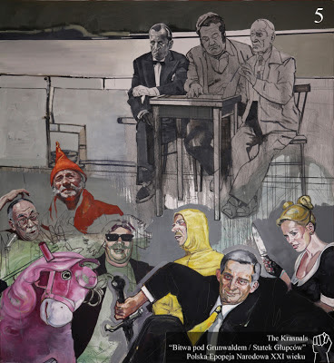 The Krasnals "Bitwa pod Grunwaldem". 2012. Olej na płótnie. 430 x 990 cm. Fragment nr 5 „Komisja”