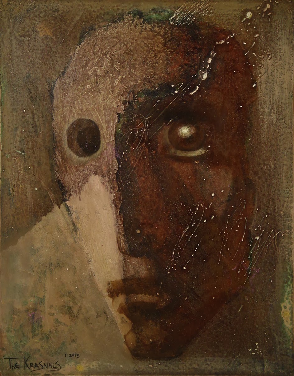 | The Krasnals. Whielki Krasnal "Where Do We Come From? What Are We? Where Are We Going?". 2013. Akryl, Olej na płycie. 39 x 30,5cm |