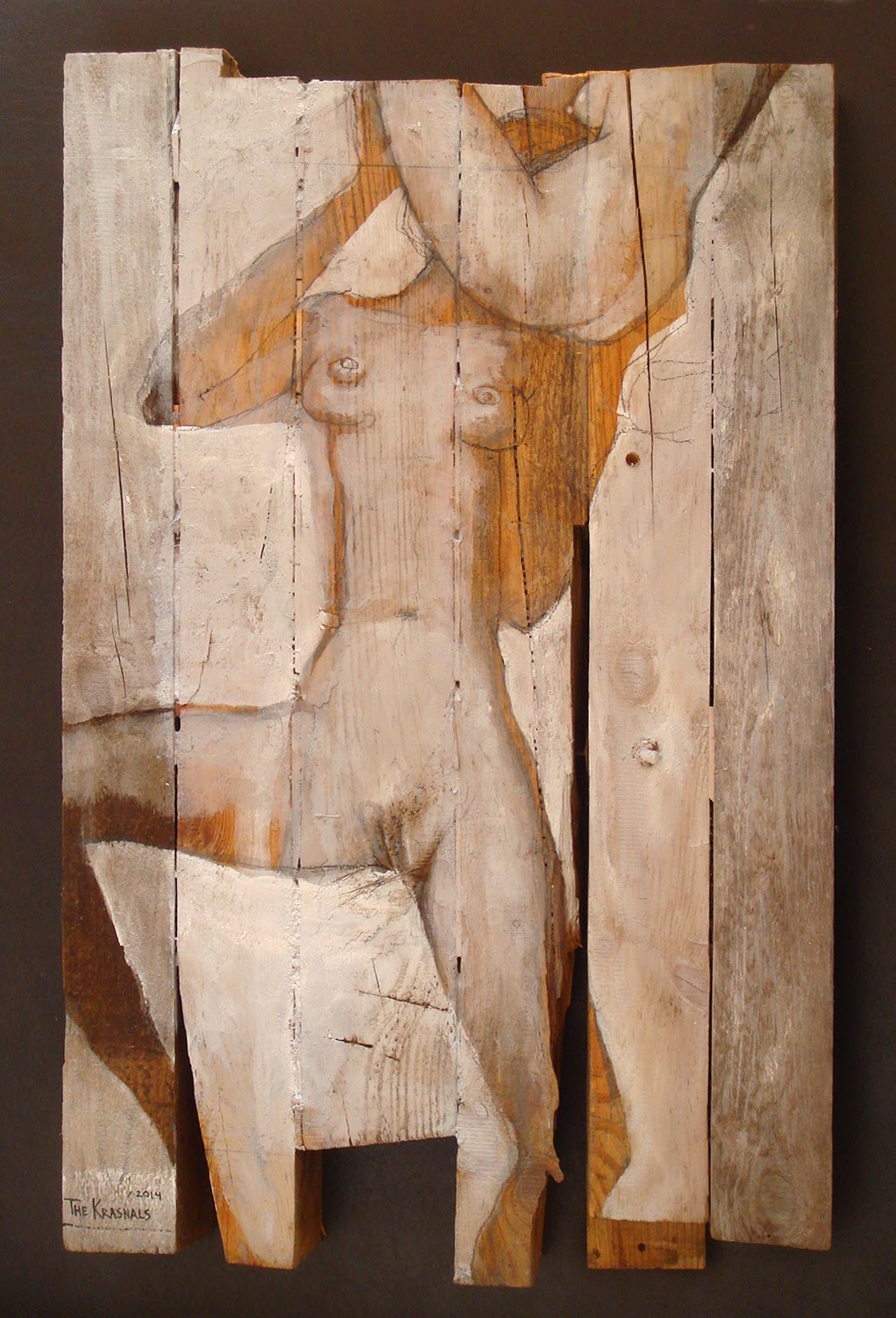 The Krasnals. Whielki Krasnal "Ikona Ukraińsko-Rosyjska./ - A chuj z tą wojną... - pewnie..." 2014. Akryl na desce. 79,5x50cm |
