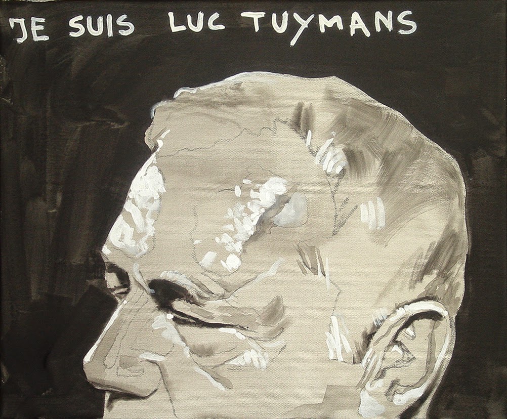 "JE SUIS LUC TUYMANS / Katrijn van Giel / Jean Marie Dedecker / The Krasnals". 2015. Acrylic on canvas. 38 x 46 cm |