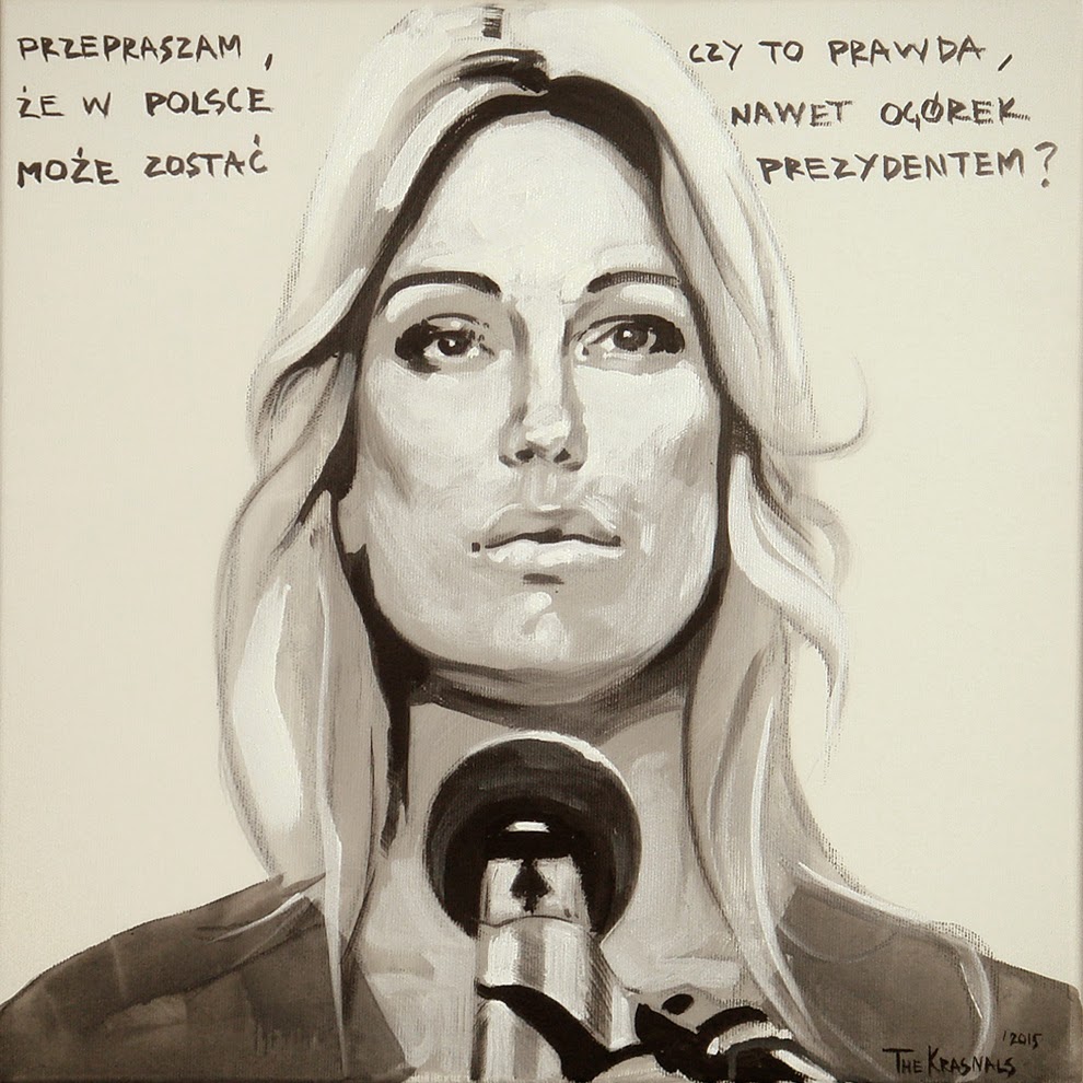 | "CHCEMY POLSKI RACJONALNEJ, A NIE RADYKALNEJ" The Krasnals. Whielki Krasnal "Sorry... / Bronisław Komorowski / z cyklu "Casting na prezydenta"". 2015. Akryl na płótnie. 40 x 40 cm |