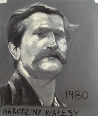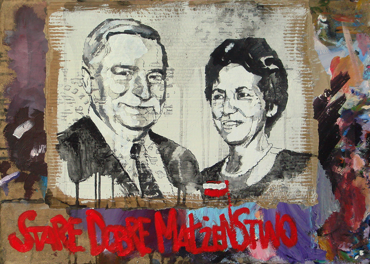 The Krasnals "Narodziny Wałęsy / z cyklu Whielcy Polacy". 2008. Olej na tekturze.